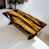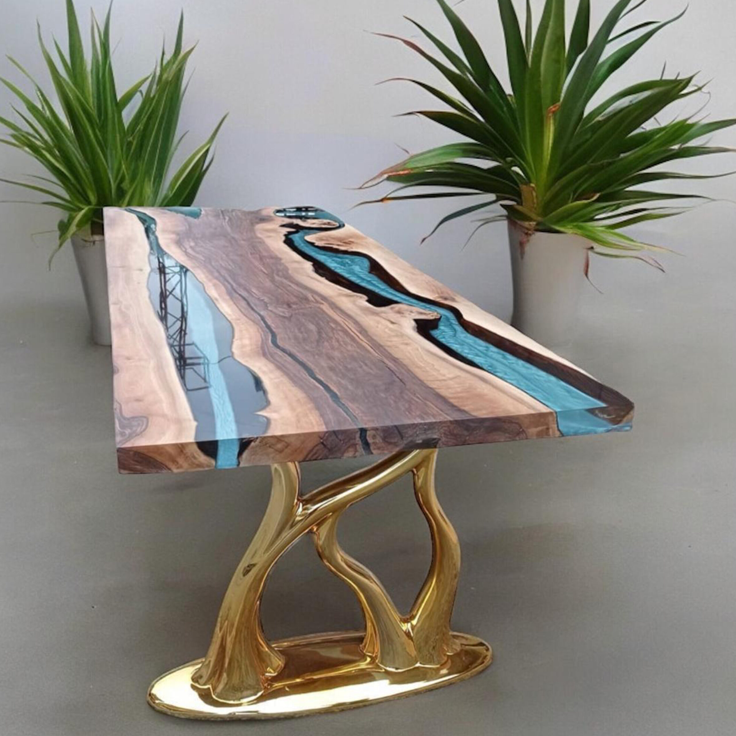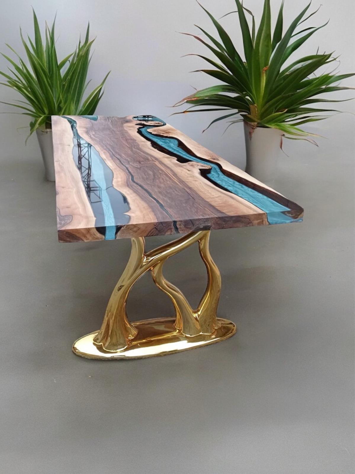 The turquoise coated epoxy table is a modern piece of furniture that offers both elegance and functionality. While its usually vibrant turquoise color adds energy to the atmosphere of the room, the epoxy coating provides long-lasting use with its durability and water resistance. Its legs are usually made of sturdy materials such as metal or wood, which increases the stability of the table.